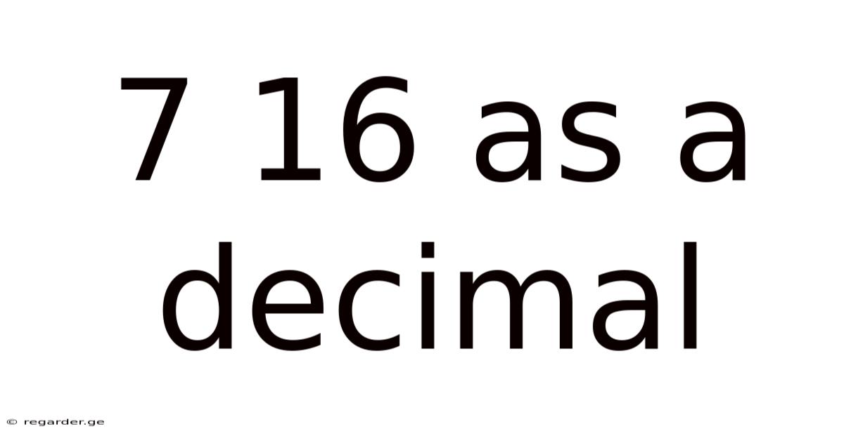 So, 7/16 as a decimal is 0.4375. This is a terminating decimal, meaning the decimal representation ends after a finite number of digits Less friction, more output..